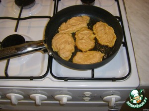 На разогретую сковороду добавить растительное масло и выложить полученное тесто разровнять ложкой и обжарить с двух сторон