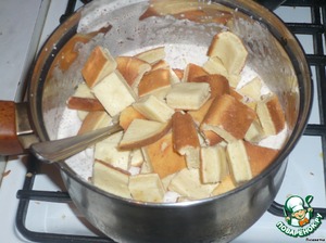 Вынуть из формы, немного остудить, нарезать кубиками.