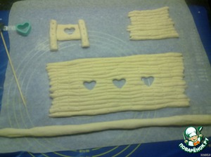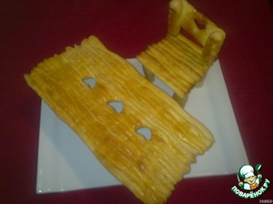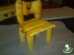Когда тесто готово начинаем лепить из теста "столик" и"стульчик".Для этого раскатать тесто и сделать некоторые части ,разрезав тесто на соответствыющие детали.