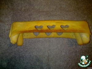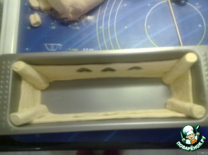 Теперь вложить детальки на дно металлической формы.Прикрепить из жгута 4 "ножки".