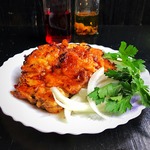 Подать с жареным картофелем, полив кабоб выделившимся при жарке соком и посыпав зеленью.