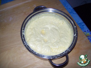В остывшую массу вбиваем миксером мягкое сливочное масло. Крем хорошо взбиваем.