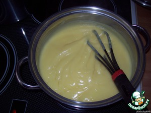 Смесь варим постоянно мешая на среднем огне до загустения. Пока не получится вот такая масса-похожая на пудинг. Отставляем в сторону накрыв крышкой (без крышки на поверхности образуется не очень аппетитная корочка) иногда массу помешиваем. Остужаем до состояния парного молока.