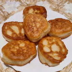 Затем мокрой ложкой выкладываем тесто на хорошо разогретую масляную сковородку и выпекаем с двух сторон до золотистого цвета.