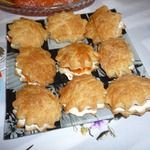 Выложить на смазанный противень, помазать взбитым желтком. Выпекать при темп-ре 190-200 гр 15-20 минут, пока не зарумянятся. Остудить.