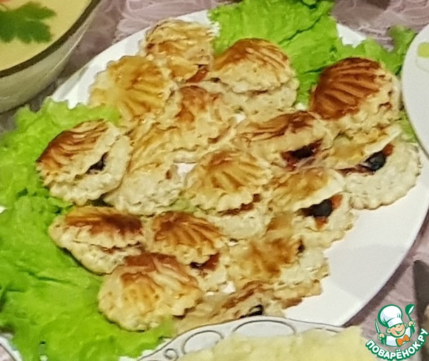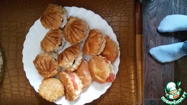 Слоеное тесто разморозить, слегка присыпать мукой, раскатать. Формочкой вырезать будущую ракушку.