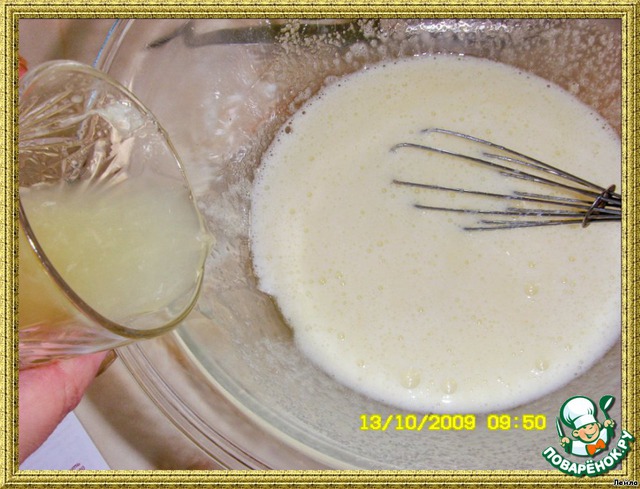 - Сок лимонный (185 мл,в начинку) — 3/4 стак.