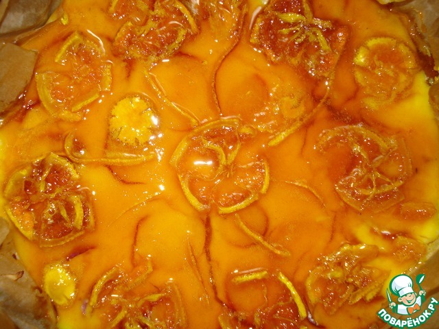 Поставить форму с тестом на решетку в духовке и осторожно вылить лимонный крем. Печь 40 мин.,