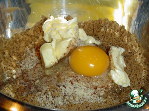 и добавляем к ним размягченное масло и яйцо.