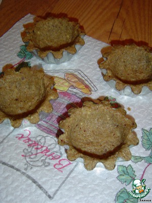 Полученную массу распределяем по формам, формируя корзиночки, и выпекаем в духовке при температуре 190 гр. 15 минут.