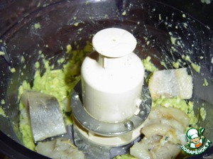 Пока корзиночки запекаются, готовим крем. Для этого измельчаем с помощью блендера очищенный авокадо, сельдь.