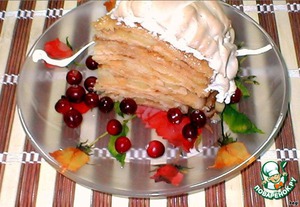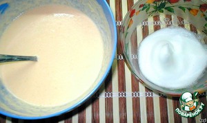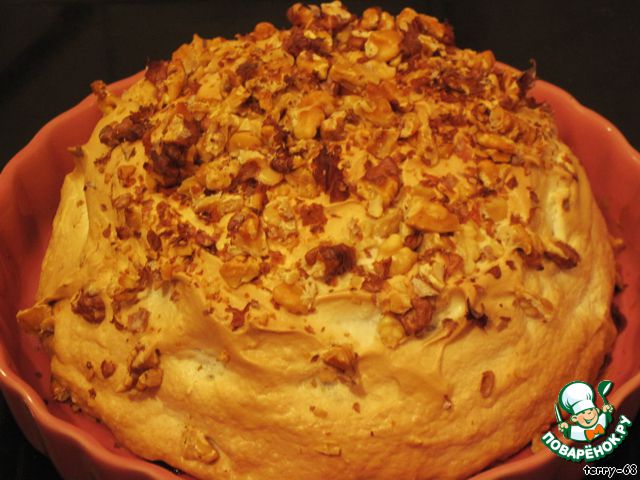 Взбить остальные белки с сахаром (70 г.), залить блинчики и подрумянить в горячей духовке.