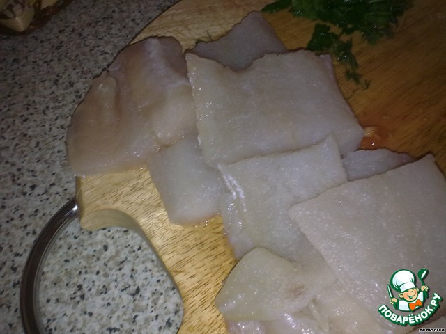 • Рыбу режем порционными кусками и слегка солим.