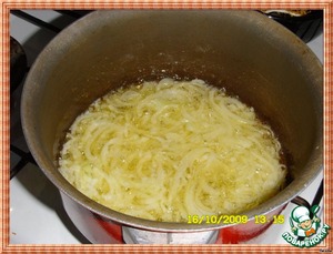 Нагреваем в кастрюле масло и пассеруем лук.