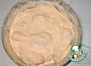 Перемешать курицу и соусом, чтобы полностью перемазалось