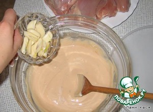 Для любителей сильных вкусов, сочетание майонеза, томата и соевого соуса в маринаде для курочки.