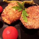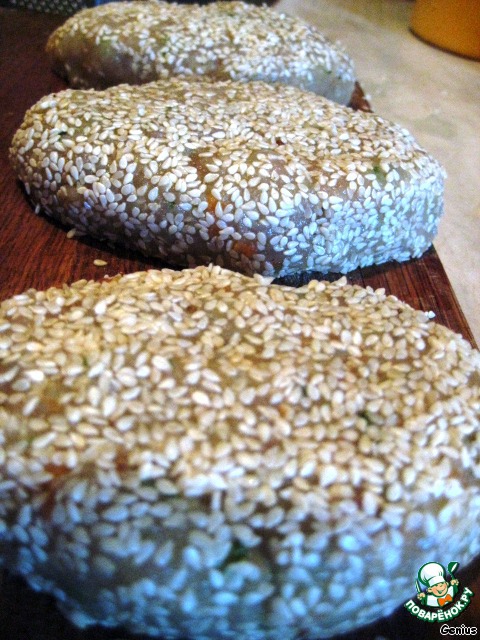 Затем лепим котлеты и обваливаем в кунжуте. Обжариваем с добавлением оливкового масла по 3 минуты с каждой стороны, даем немного "дойти" под крышкой, ещё 10 минут.