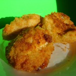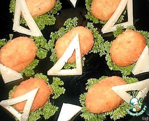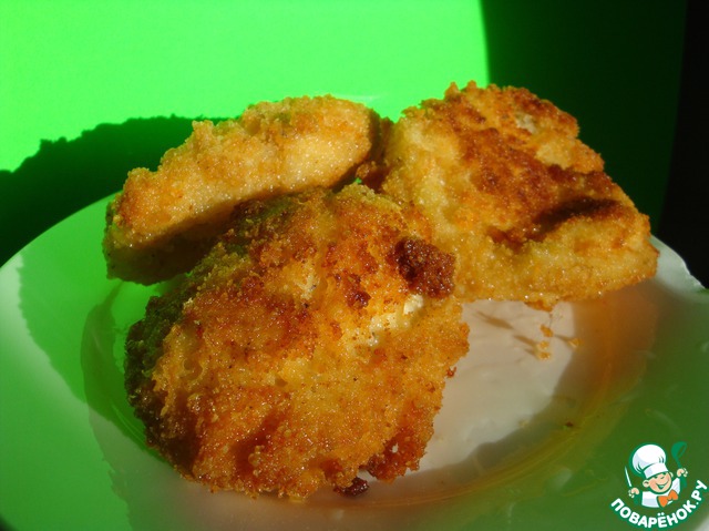 Обвалять в панировке (панировку не жалеть!), обжарить во фритюре до золотистого цвета (я жарила в раскаленном подсолнечном масле).