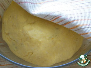 • Смешать жидкую смесь с сухой. Раскатать тесто, по необходимости добавить ещё муки.