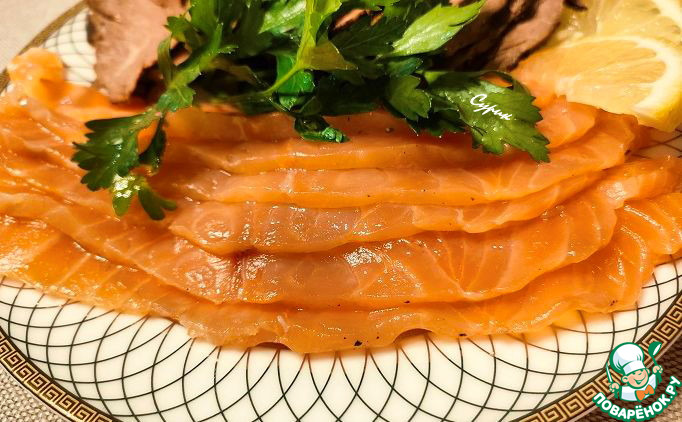 Только я без пресса ее делаю. Натираю с двух сторон смесью соль+сахар (иногда даже с одной - там, где шкурка, не натираю). Кладу в эмалированный лоток и в морозилку. В идеале дня на 2-3. Потом по мере необходимости достаю, немного размораживаю и на бутербродики.