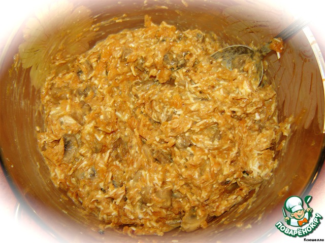 Смешать тыкву с грибами и дать остыть до комнатной температуры.