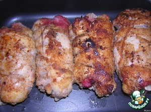 Рецепт «Курочка с вишней, колбасой и сыром»: