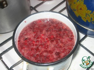 Клюкву протираем через сито, заливаем жмых из сита водой и доводим до кипения.