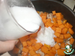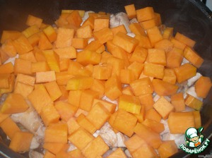Получившуюся массу отправить в сотейник к тыкве и мясу.