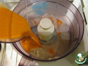Влить к банану со льдом сок
