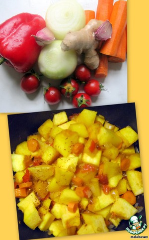 - Ассорти овощное (морковь, болгарский перец, помидоры,лук, чеснок)