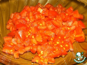 • Пока рис варится, мелко нарезаем помидоры.