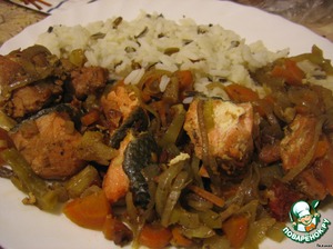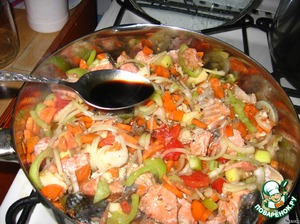 Кета с овощами, яблоками и соусом наршараб