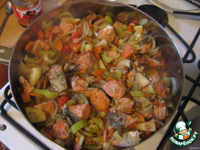 Кета с овощами - это уже вкусно, а наршараб придает ей легкую приятную кислинку.