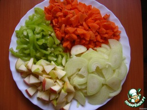 Овощи и яблоко нарезать.