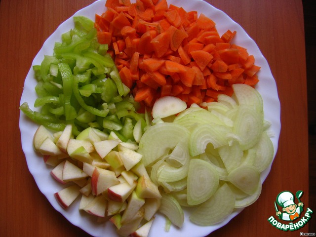 Рецепт «Кета с овощами, яблоками и соусом наршараб»: