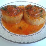 По верх кабачков кружочки помидора и на помидор майонезную смесь.
