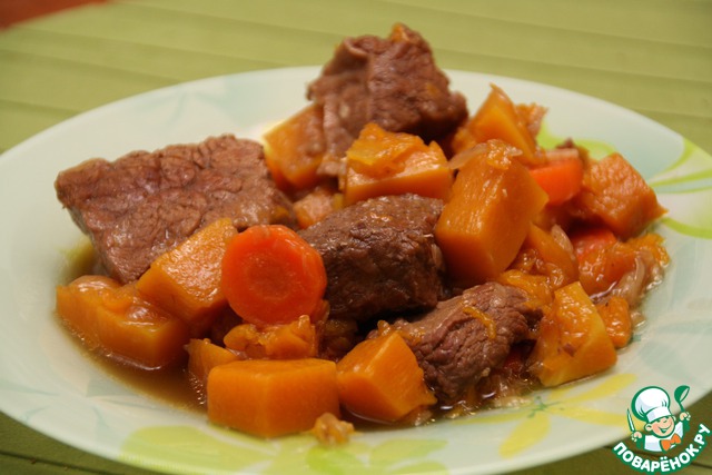 Рагу из говядины с тыквой в пиве