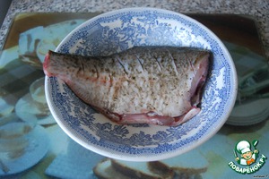 Рыбу чистим, потрошим, убираем плавники. На спинке делаем надрезы.