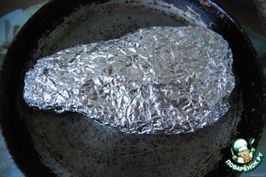 Заворачиваем всё это в фольгу (заворачивайте плотно, чтобы не было дырочек, иначе через них потечёт сок, который будет пригорать и пахнуть!)