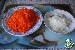 На эту "подстилку" выкладываем рыбу, сверху неё оставшийся лук, а затем морковь.