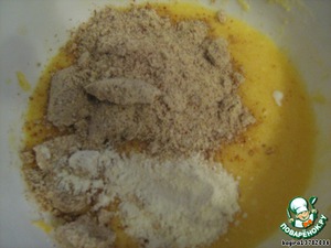добавим муку и миндаль и хорошенько размешаем. Крем получится густой и тягучий.