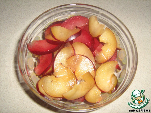 Сверху выкладываем сливы и ставим в нагретую до 200 градусов духовку на 20-30 минут.