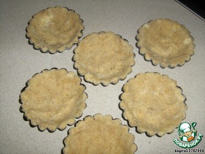 Теперь делим тесто на 6-8 колобков и руками растягиваем по формочке.