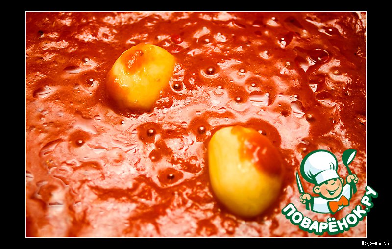Зубчики чеснока подрумяниваем в нескольких ложках оливкового масла, затем добавляем помидоры, очищенные от кожицы и семечек, порезанный мелко острый перец и соль по вкусу. Накрываем крышкой и оставляем тушиться минут на 20, время от времени помешивая.