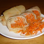 1. Морковь натираем на крупной терке, добавляем красный горький перец и перемешиваем. Начинка готова.