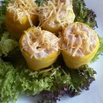 - Фарш мясной (готовый, обжаренный с 2-3ст.л. сметанки) — 200 г