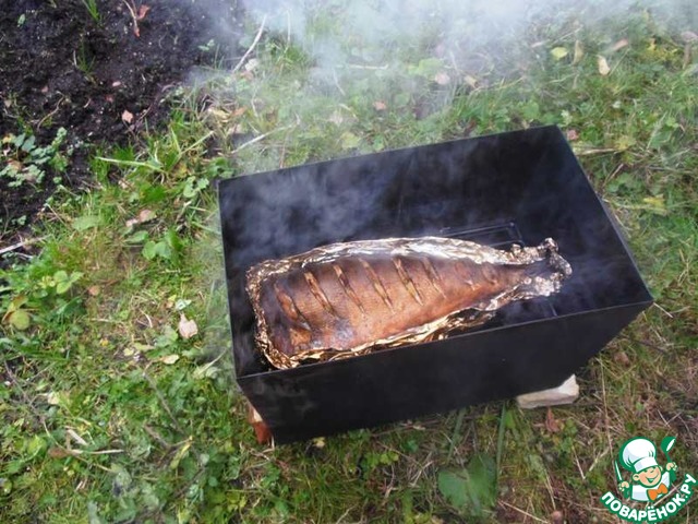 = После снятия с огня, крышку открываем осторожно. Веточки на дне, получив доступ воздуха, могут полыхнуть пламенем. Держим «наготове» примерно 0, 5 литра воды, чтобы залить пламя. Если готовим рыбу -полезно плеснуть в ящик водой с небольшим количеством уксуса и тут же закрыть крышку на несколько минут, чтобы «придавить» запах рыбьего жира.