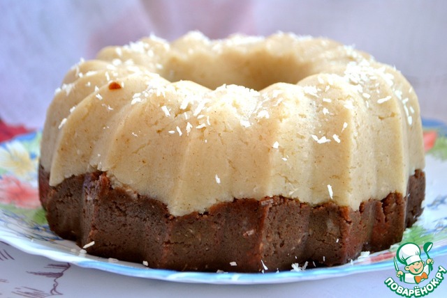 Ставим форму в прохладное место. Как только остынет, переворачиваем на блюдо и посыпаем кокосовой стружкой.