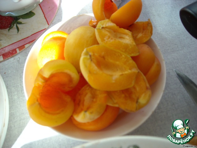 Абрикосы вымыть, освободить от косточек и нарезать на половинки. -