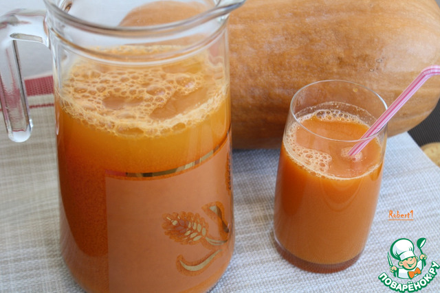 Очистить тыкву и яблоко, пропустить через соковыжималку.